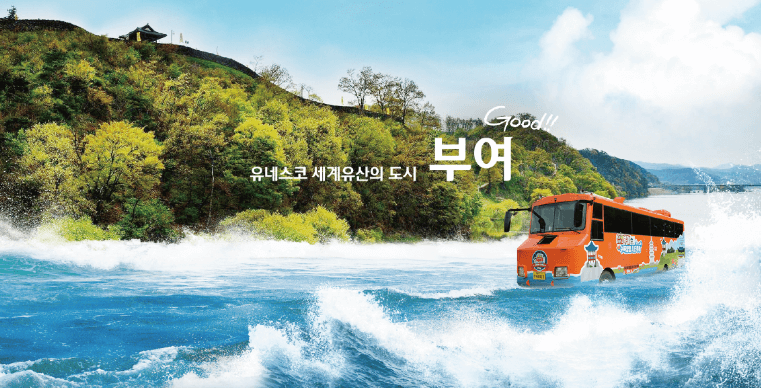 백제의 수도였던 부여. 역사만큼 아름다운 풍경과 자연경관 그리고 역사적인 명소를 해상과 육상을 넘나들며 볼 수 있는 부여 수륙양용 시티투어 버스는 많은 분들이 찾는 명소입니다.