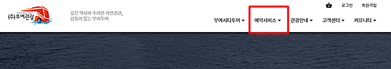 ➡️ 검색창에 "부여 수륙양용버스 투어"를 검색한 뒤에 홈페이지 로그인 - 홈페이지 상단 예약서비스 선택