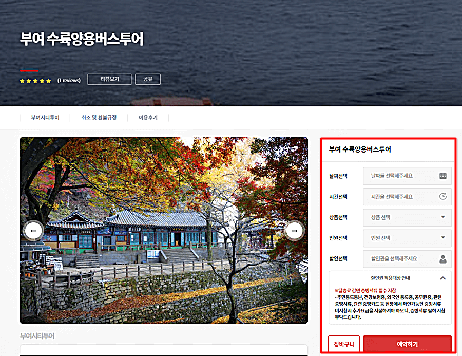 부여 수륙양용버스투어는 온라인 예약이 우선 진행되니 아래에서 예매를 하셔야 합니다.